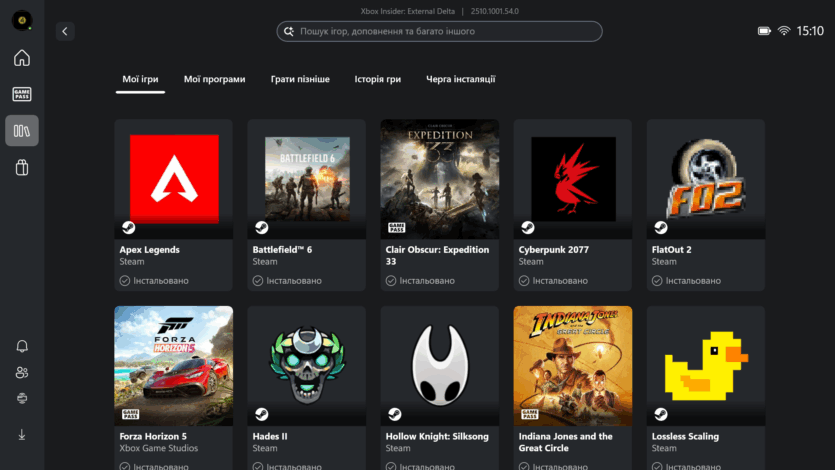 При старте Windows будет запускаться Xbox App. Стандартный интерфейс Windows не совсем подходит для портативных консолей. Для решения этой «неприятности» Microsoft решила обновить приложение Xbox App, которое представляет собой объединяющий хаб для различных сторонних магазинов игр: Steam, Epic Store, GOG и другие. Не волнуйтесь, Microsoft Store с Gamepass встроен в приложение.