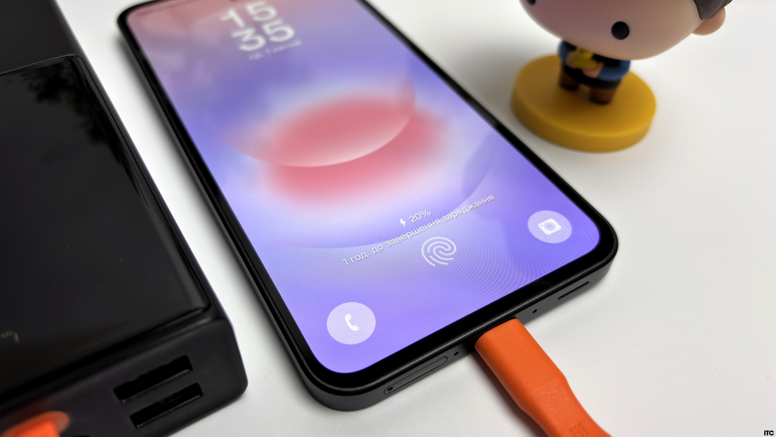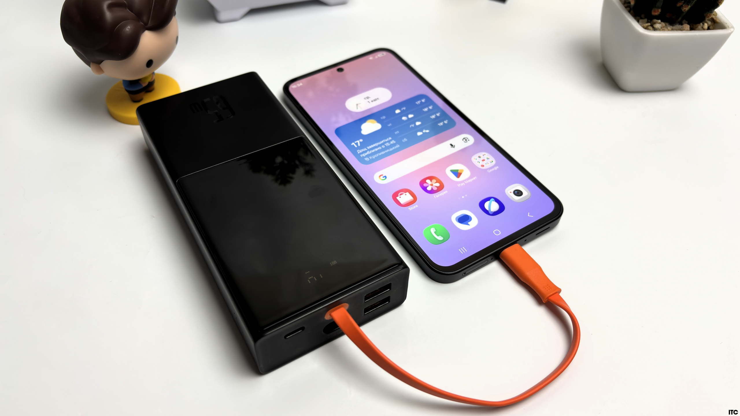 Отдельно мы протестировали зарядку Samsung Galaxy A37 от павербанка Baseus Elf Digital Display 20000 mAh 65W. Смартфон поддерживает быструю зарядку до 45 Вт, и в реальном сценарии зарядка идет ровно, без резких скачков: самый быстрый рост в первые 20-30 минут, далее постепенное выравнивание через термоконтроль. Полная зарядка заняла у меня чуть больше часа.