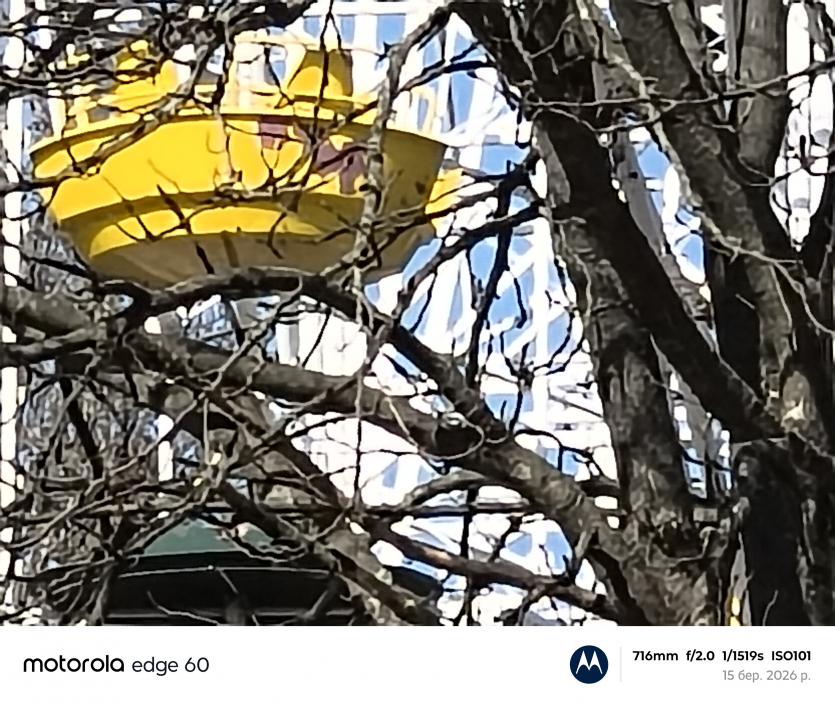 Ультраширокоугольная камера тоже на 50 Мп с углом обзора 122 градуса. Она поддерживает автофокус и макросъемку. Телефото-модуль на 10 Мп с трехкратным оптическим зумом действительно полезен. Но 30-кратный цифровой суперзум ожидаемо выдает пиксельную «кашу» даже в паре с ИИ-алгоритмами.
