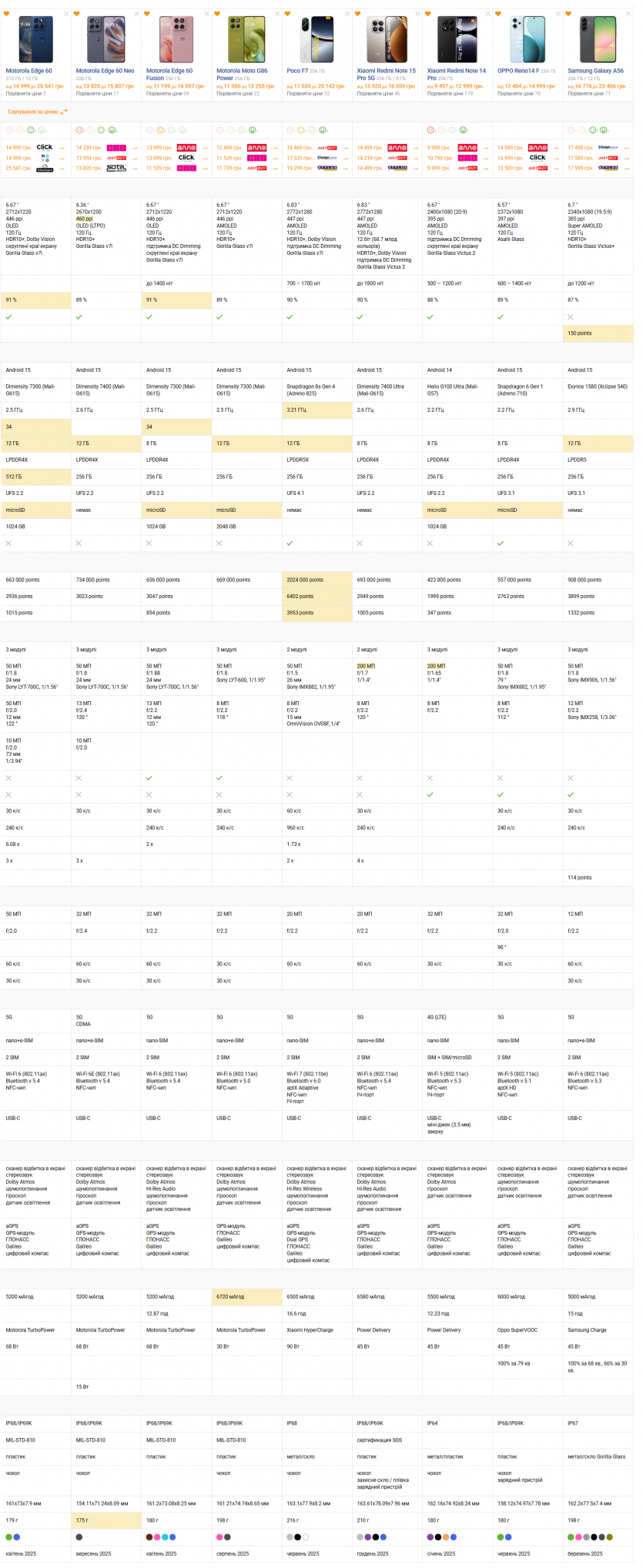 Samsung Galaxy A56 (от 16 700 гривен) — самый опасный конкурент. Он предлагает более мощный чип и премиальные материалы корпуса. Но Edge 60 отвечает более ярким дисплеем, более быстрой зарядкой и наличием телевика.