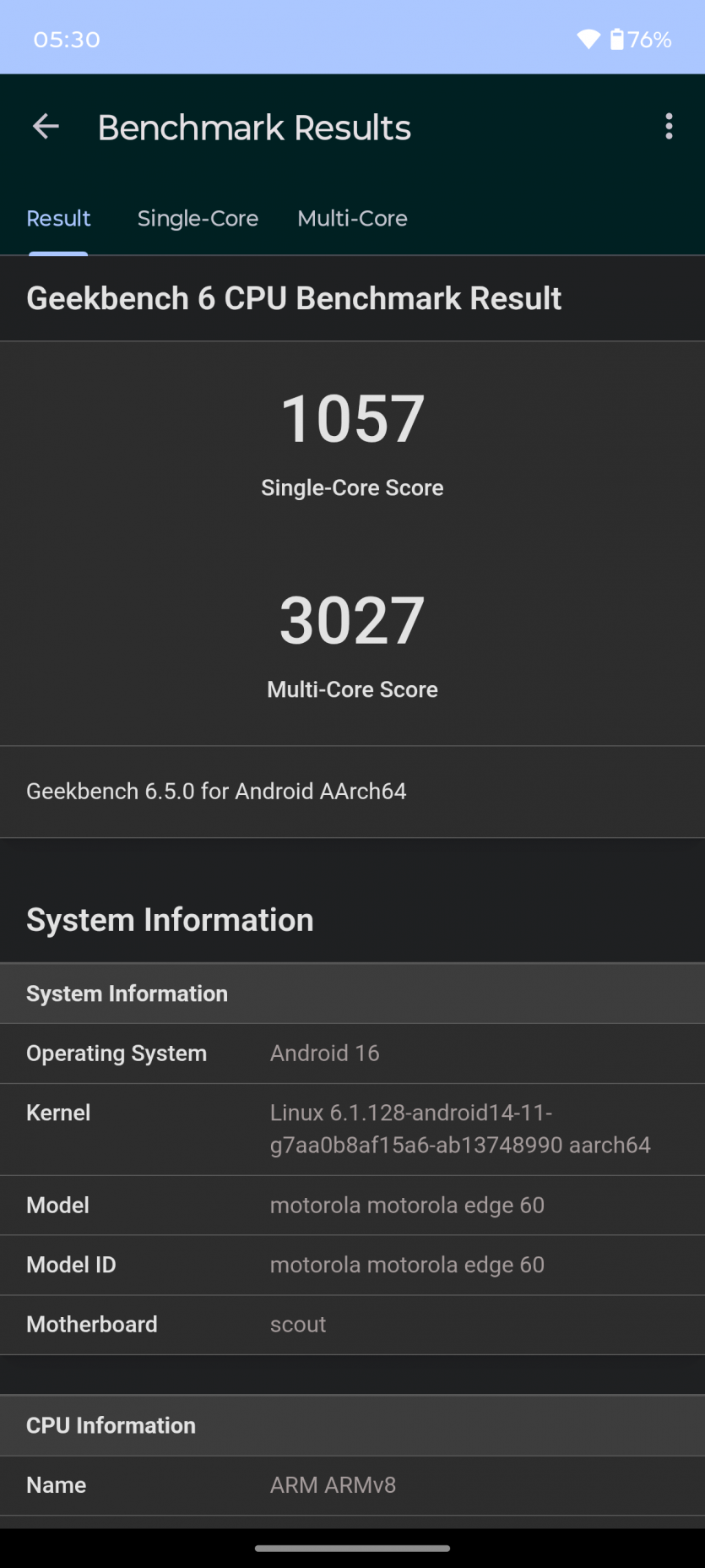 Motorola Edge 60 работает на MediaTek Dimensity 7300 — чипе, который не гонится за рекордами, зато держит стабильный уровень в повседневных задачах. Это хорошо ощущается уже в первые дни: интерфейс быстрый, переключение между приложениями без задержек, система не «задумывается» без причины.