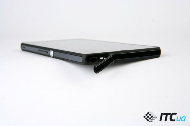 Как и в Sony Xperia ZL, остов корпуса изготовлен из цельного куска пластика, боковины которого покрывают вставки из полиамида. Именно на них расположены все разъемы. Справа находится слот под microSIM, кнопка питания и регулировки громкости, а также продолговатое отверстие динамика. Слева разъем для Micro-USB и MicroSD-карт, плюс контакты для синхронизации с док-станцией, коей в комплекте со смартфоном нет. На верхнем торце расположено гнездо для наушников, а на нижнем торце отверстие для ремешка.