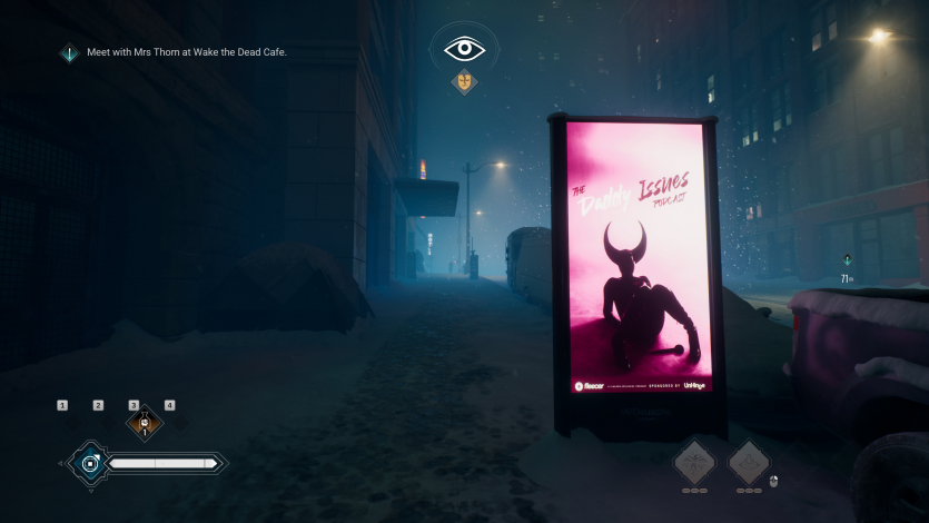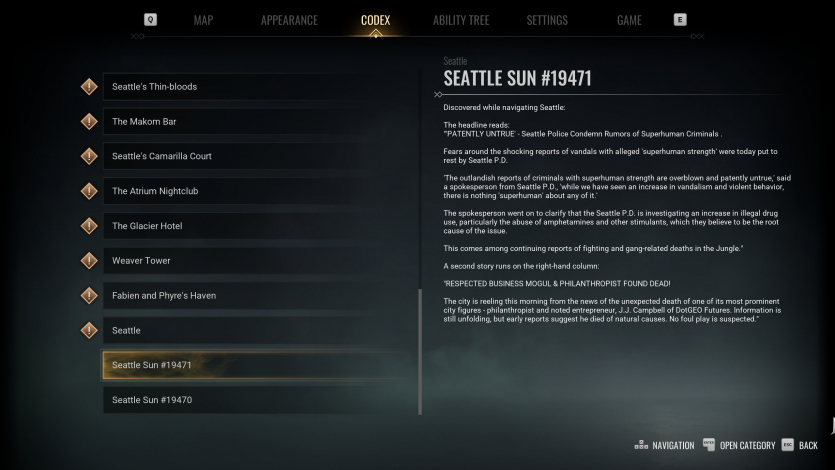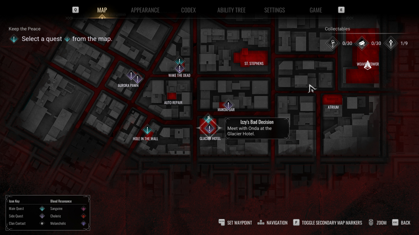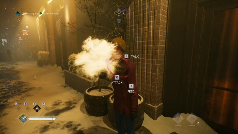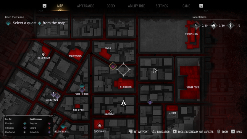 Игровой экран и навигация в Vampire: The Masquerade — Bloodlines 2 сделаны достаточно удобными: карта и меню логично структурированы, но порой слишком перегружены информацией. Новые игроки могут испытывать сложности в начале, особенно в сочетании с клановыми способностями и деревом навыков.