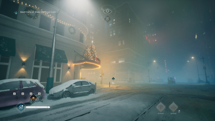 В нативном режиме, без DLSS и генерации кадров, показатель FPS стабильно держится на уровне 70+. В то же время игра не поддерживает HDR, что особенно заметно на ярких неоновых локациях Сиэтла: контраст и насыщенность цветов могли бы выглядеть значительно живее на современных экранах, но этого эффекта нет.