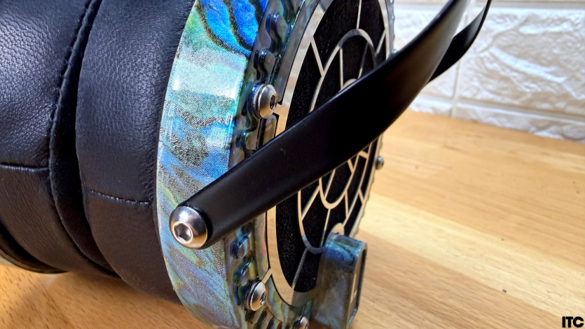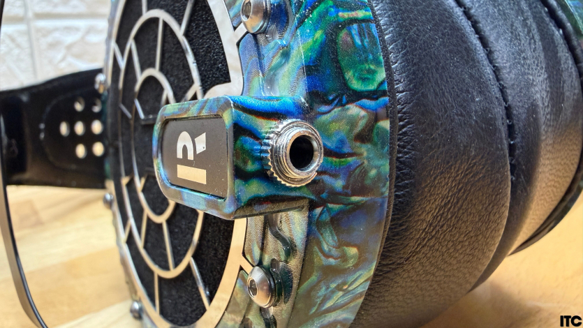 Чашки фиксируются в двух местах вилкой со стильным декоративным изгибом и демонтируются с помощью шестигранника. Сами коннекторы находятся внизу по обе стороны чашек. Это очень удобно, если вы по тем или иным причинам часто меняете кабель (например для сравнения двух источников звука). Их стороны обозначены буквами L и R, прекрасно вписываясь в общую стилистику.
