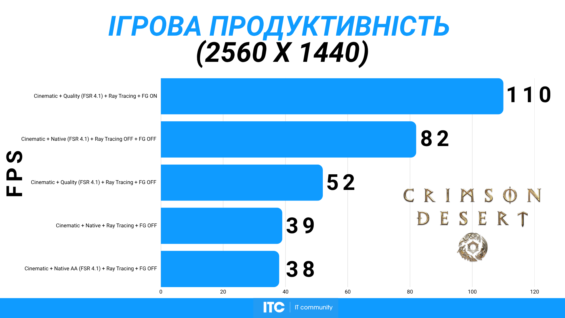 Crimson Desert с настройками Cinematic, RT и FSR 4.1 Quality + FG показывает около 110 FPS. Один из самых тяжелых тестов в списке. Radeon RX 9070 XT Hellhound Reva Edition держится уверенно.