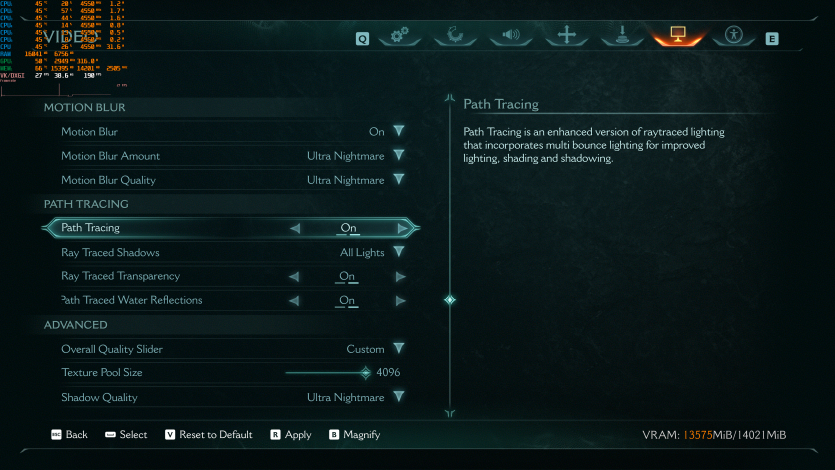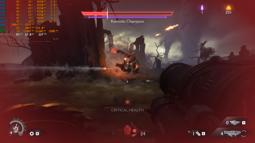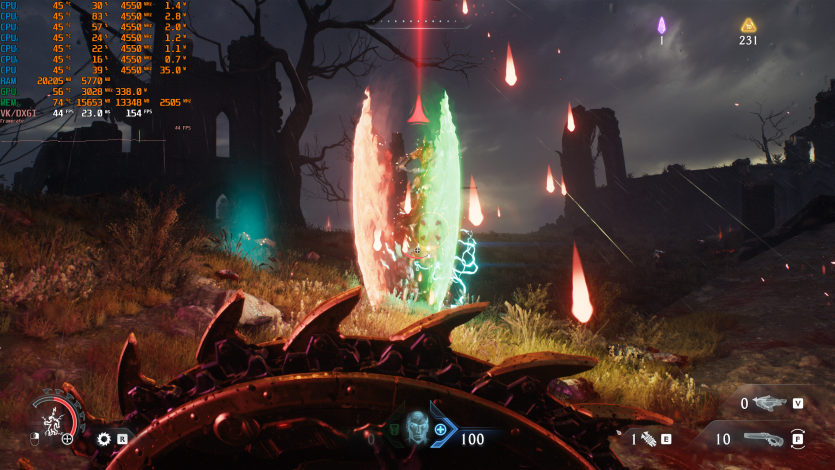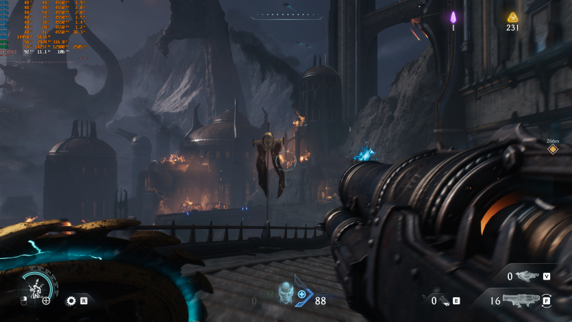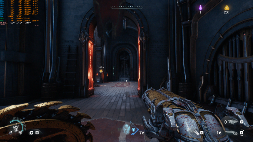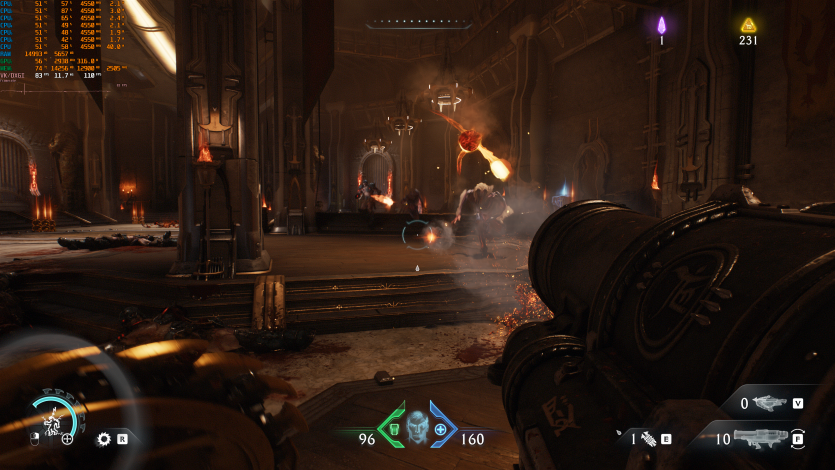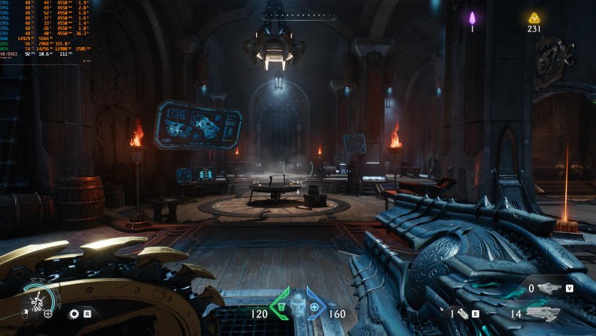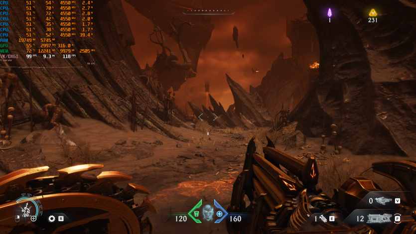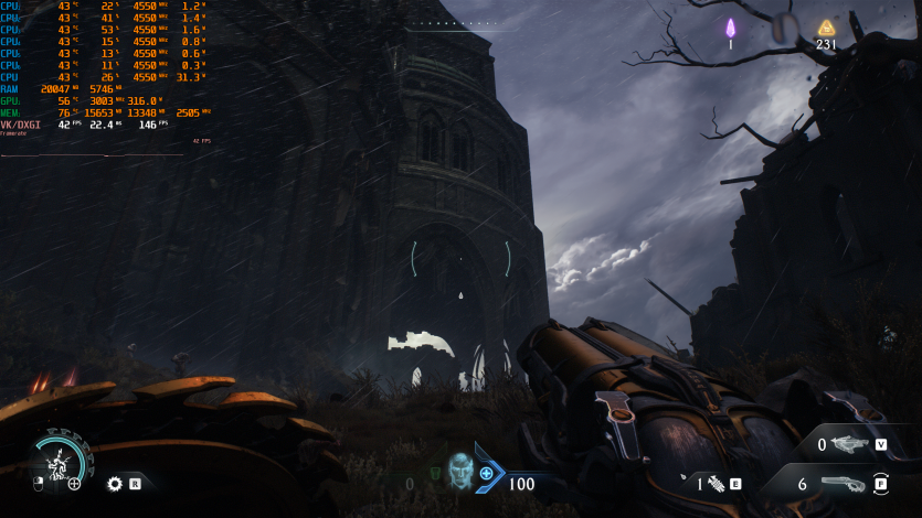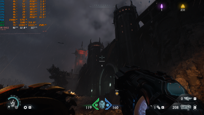 Doom: The Dark Ages с Ultra Nightmare, FSR Quality и FG (без Path tracing, но с «классическими» уже лучами) показывает ~91 FPS. Для такого ураганного экшена это уже ближе к минимально комфортному уровню.