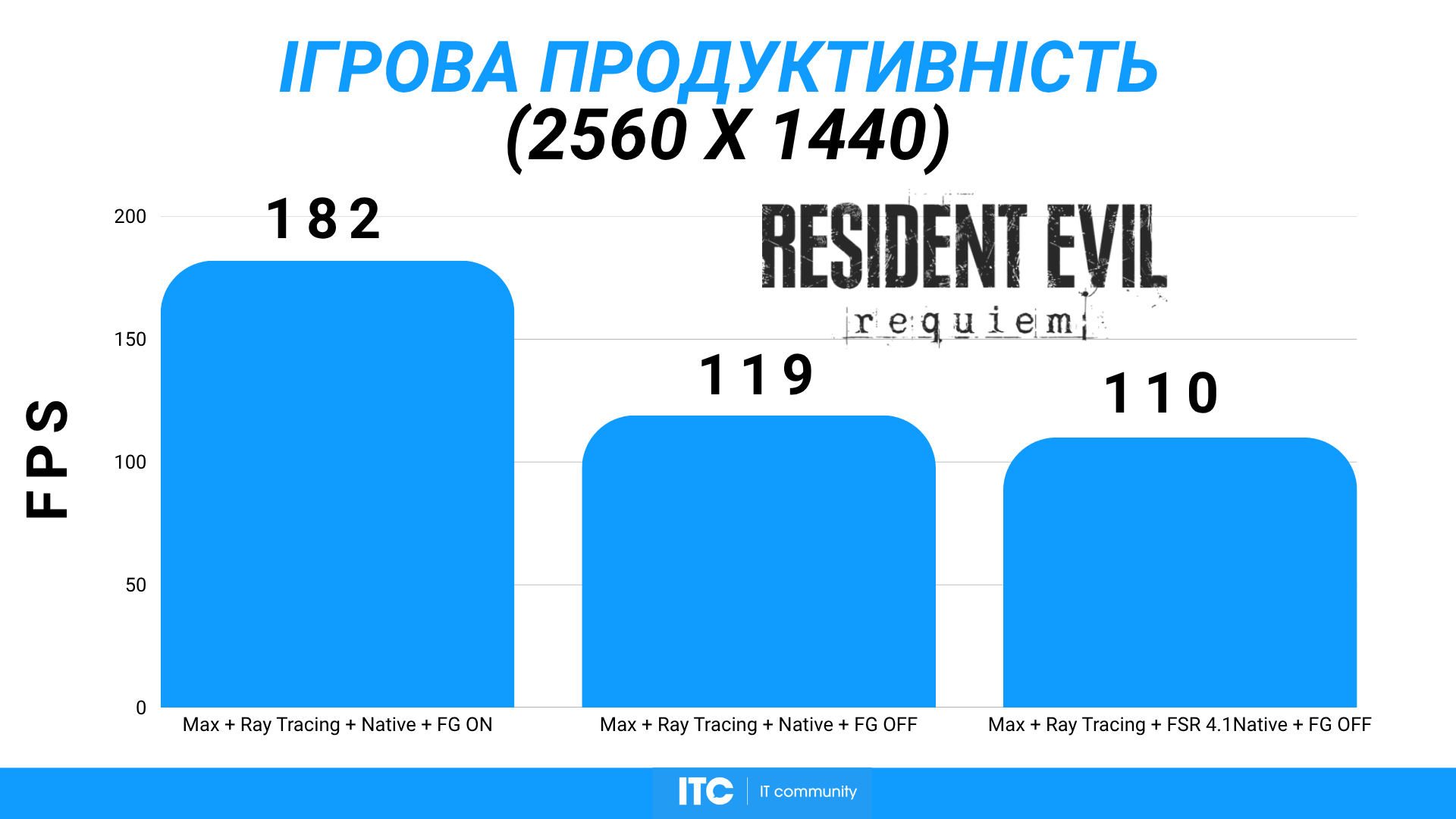 Resident Evil Requiem на пресете Max с Ray tracing, нативным разрешением и включенной генерацией кадров выдает в среднем 182 FPS. Запас по производительности тут настолько большой, что любые ограничения уже диктует не видеокарта, а частота обновления монитора.