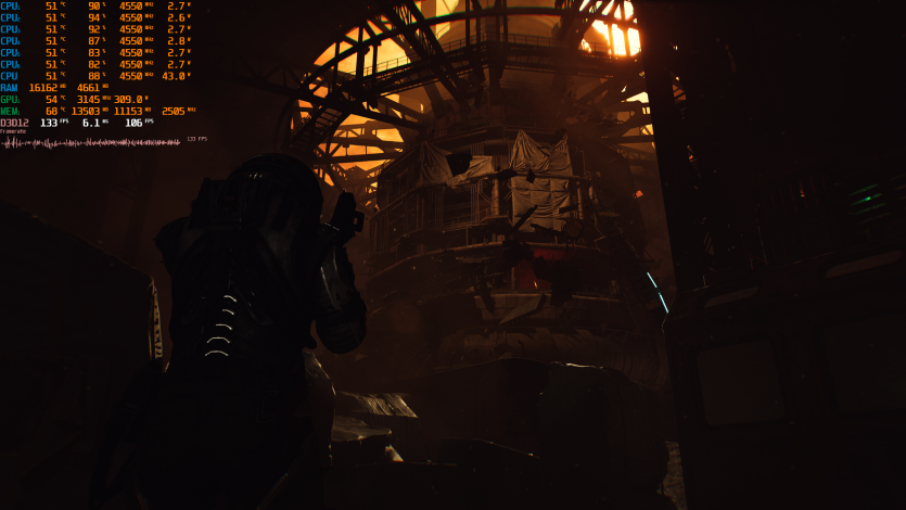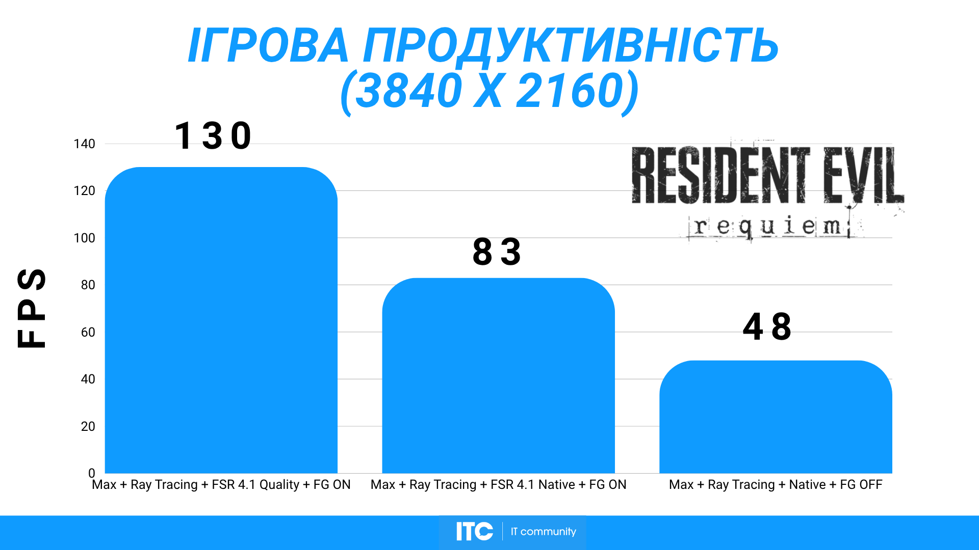 Resident Evil Requiem со всем на максимум выдает ~130 FPS. Выглядит очень легко для такого набора настроек. Игра идет ровно, без сюрпризов, и в процессе вообще не думаешь о производительности, а просто играешь.