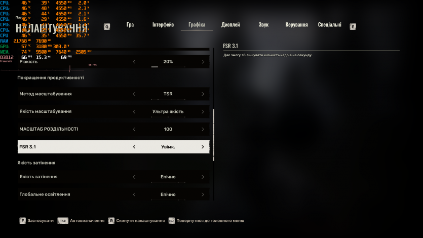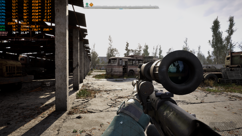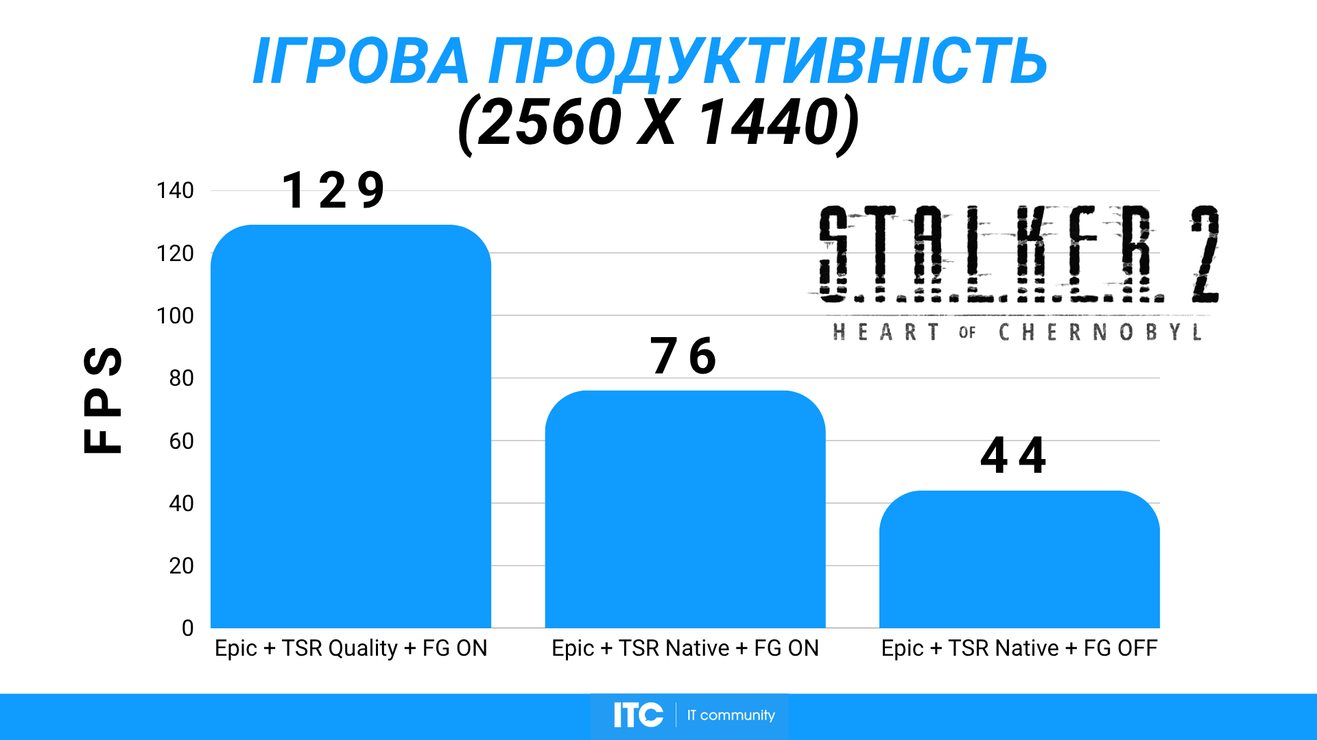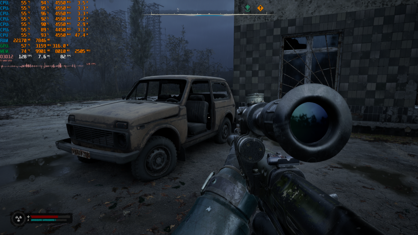 В S.T.A.L.K.E.R. 2: Heart of Chornobyl на Epic-пресете, TSR Quality и FG имеем около 129 FPS. Игра сама по себе тяжелая из-за масштаба локаций и особенностей движка Unreal Engine 5, поэтому такой результат для Radeon RX 9070 XT Hellhound Reva Edition выглядит вполне адекватно.