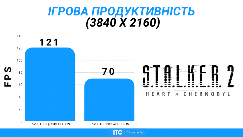 В S.T.A.L.K.E.R. 2 на Epic + TSR Quality + FG имеем ~121 FPS. Мир Зоны исследовать приятно и плавно. К тому же, совсем скоро нас ждет как сюжетное обновление, так и полноценное DLC.