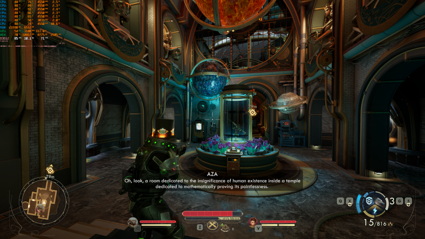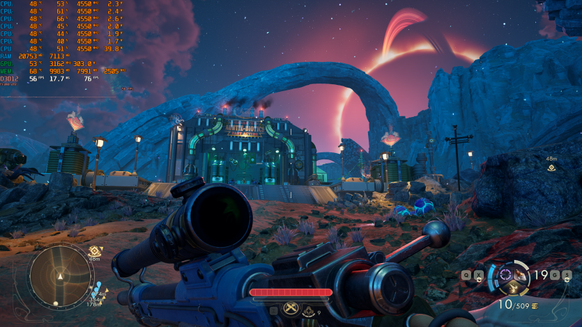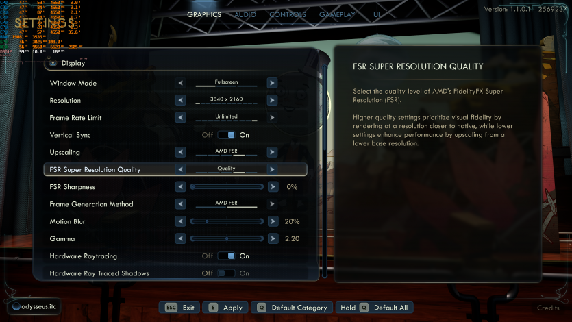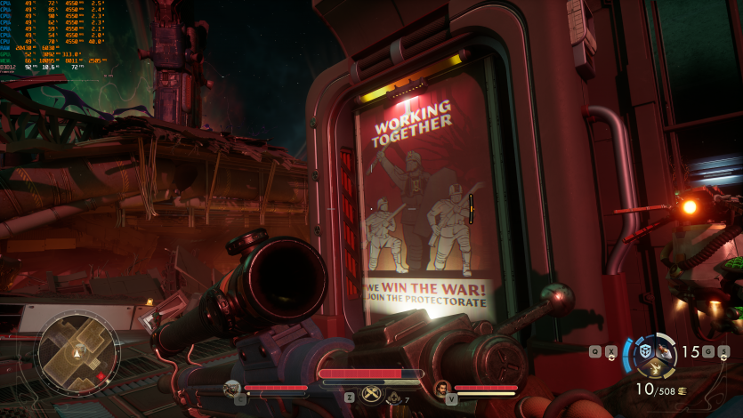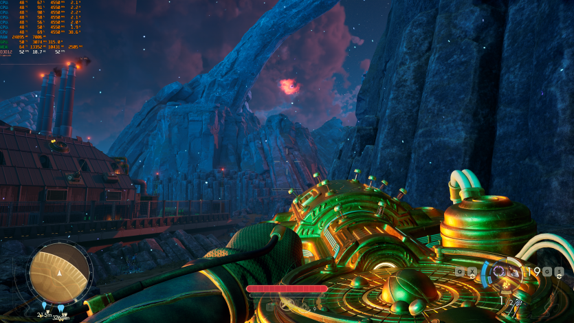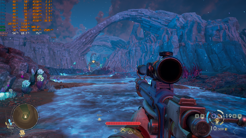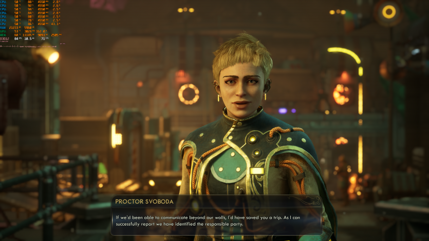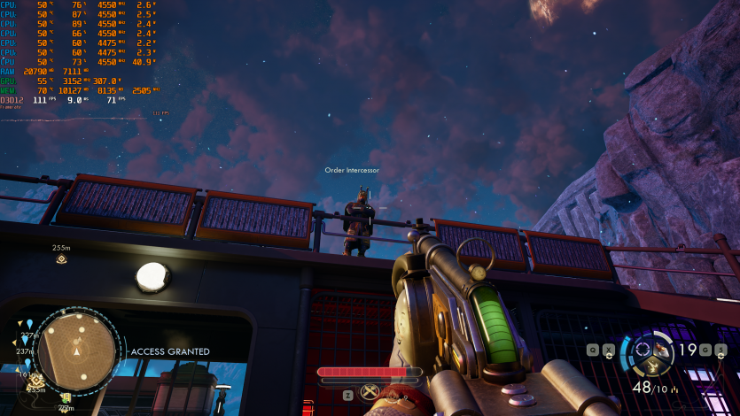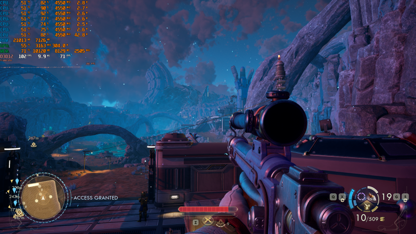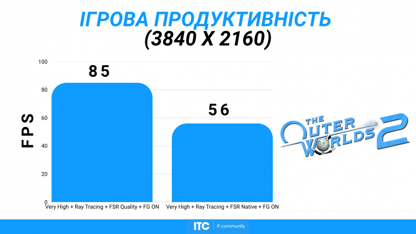 Путешествия по Аркадии в The Outer Worlds 2 (Very High + RT + FSR Quality + FG) созерцаем на уровне ~85 FPS. Тут уже приходится принимать правила игры: 4K + RT = меньший FPS. Но в целом все еще играется нормально, без дискомфорта.