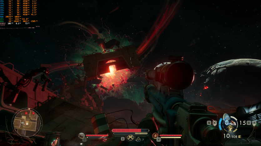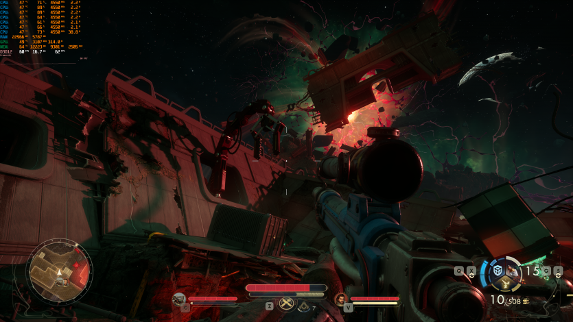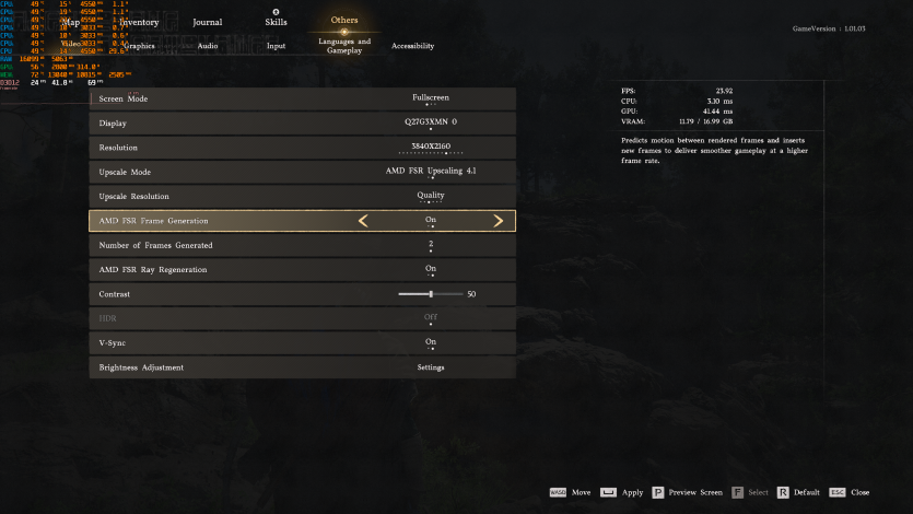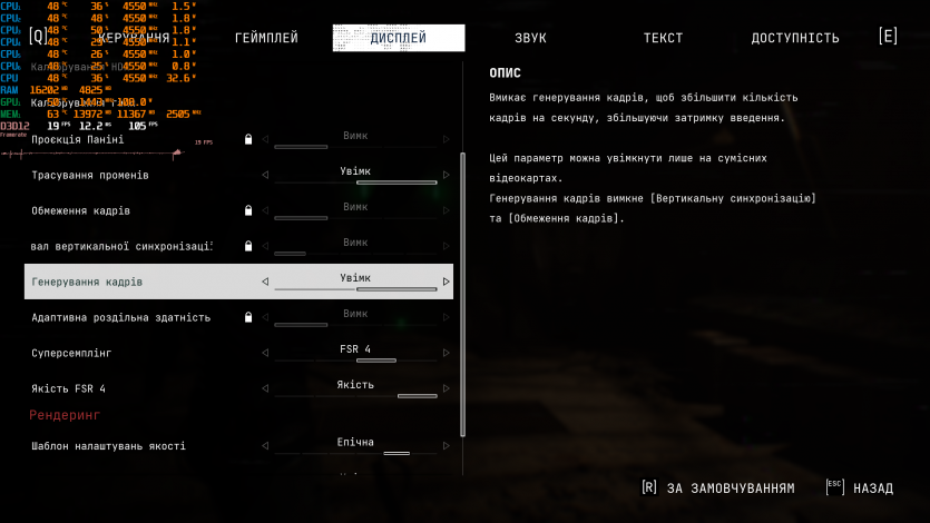 Играя в польский ужастик-выживач Cronos: The New Dawn (Epic + RT + FSR 4 Quality + FG) имеем ~98 FPS. Запас мощи уменьшается, но игра все еще воспринимается плавно.