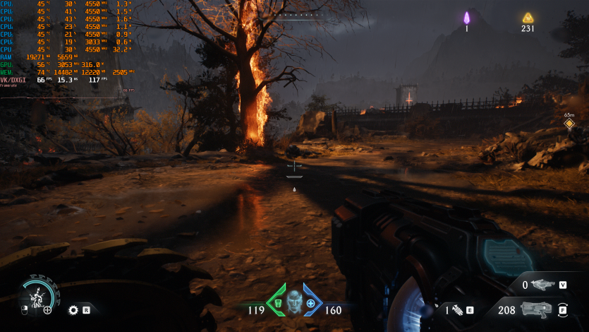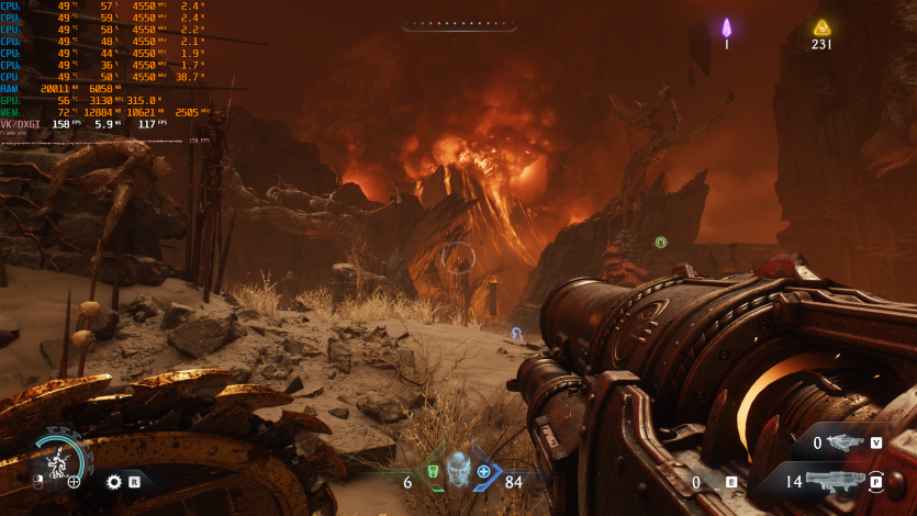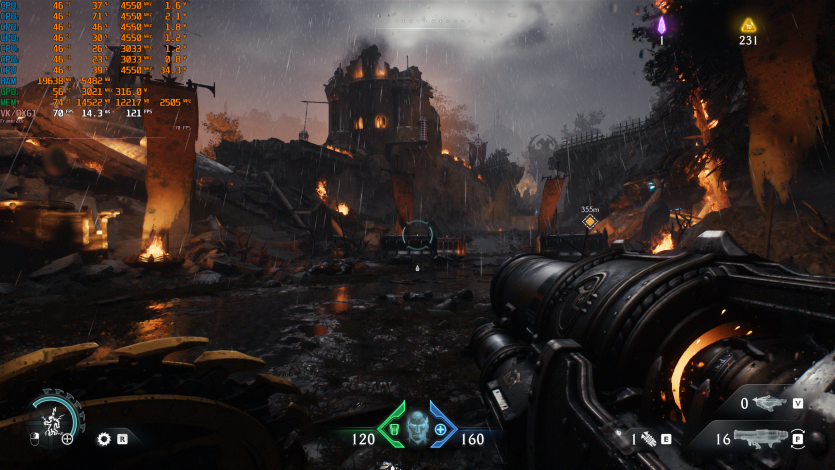 В Doom: The Dark Ages на Ultra Nightmare, активном Ray tracing в нативе с FG имеем результат на уровне ~158 FPS. С учетом темпа игры это критично: тут важна не только средняя частота кадров, но и стабильность. Radeon RX 9070 XT Hellhound Reva Edition держит ровный фреймтайм.