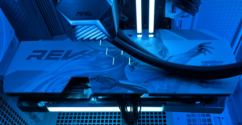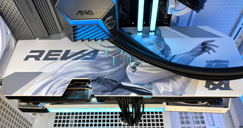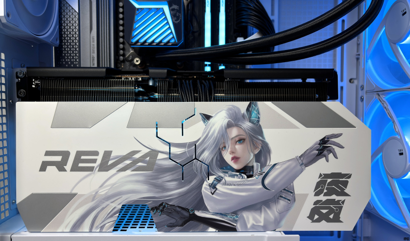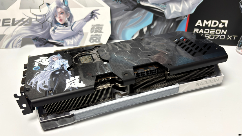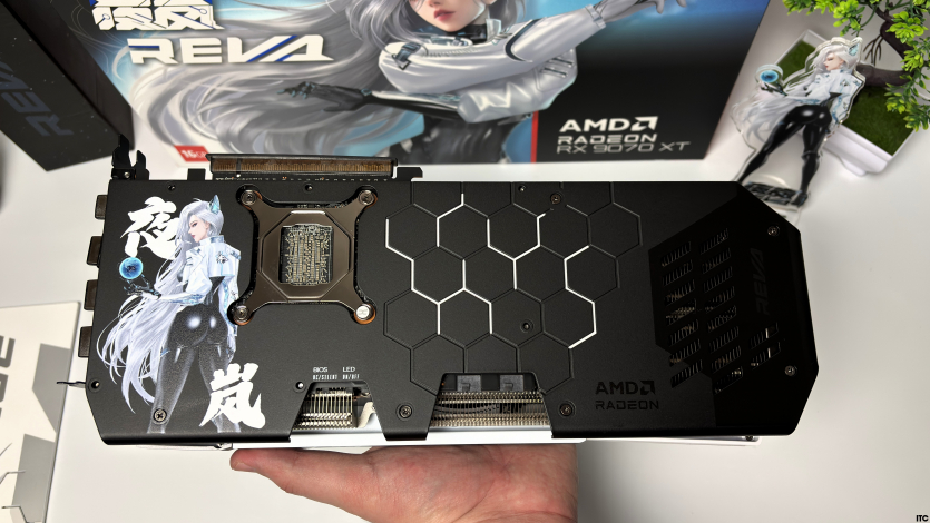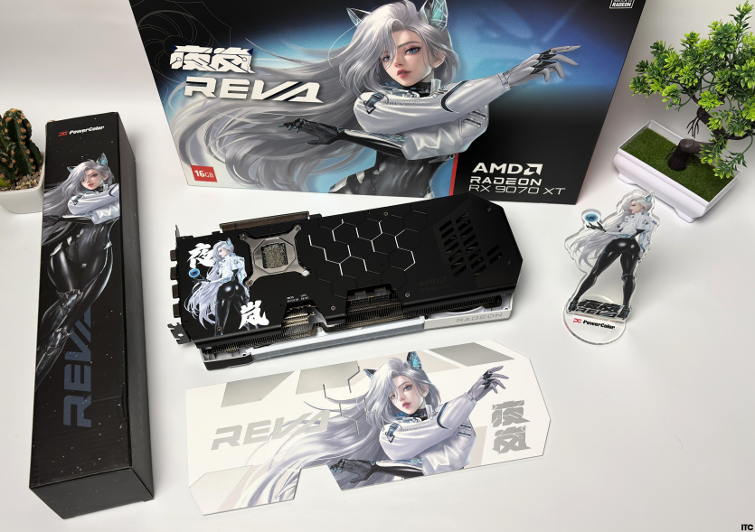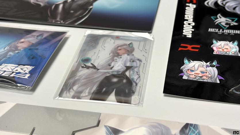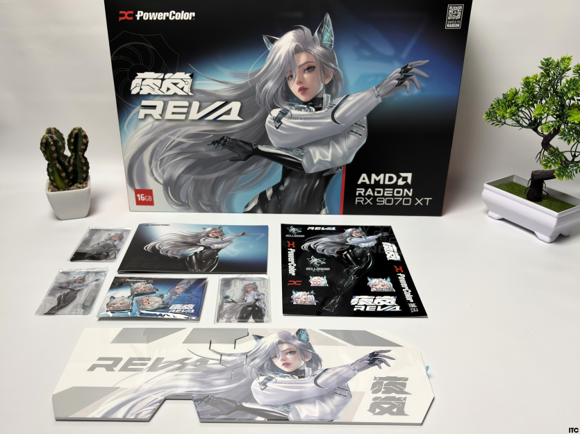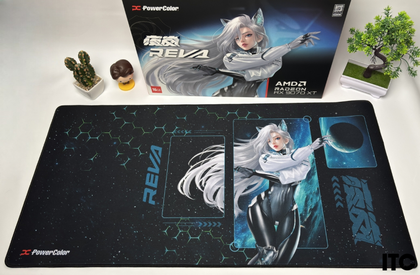 В комплекте Radeon RX 9070 XT Hellhound Reva Edition: акриловая фигурка Reva, набор стикеров, тематические бейджи (пины), коллекционные карточки с персонажем, небольшой буклет с лором, а также полноценная игровая поверхность с качественным принтом. Отдельно стоит упомянуть съемный бэкплейт, который позволяет немного изменить вид карты под белоснежную сборку.