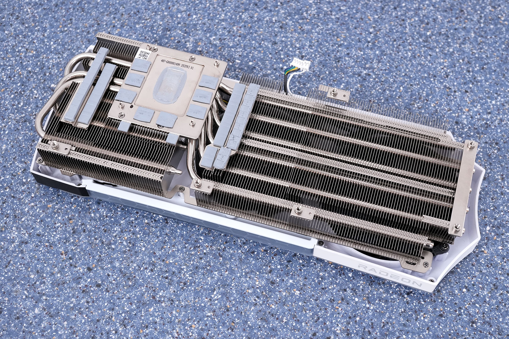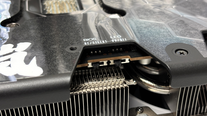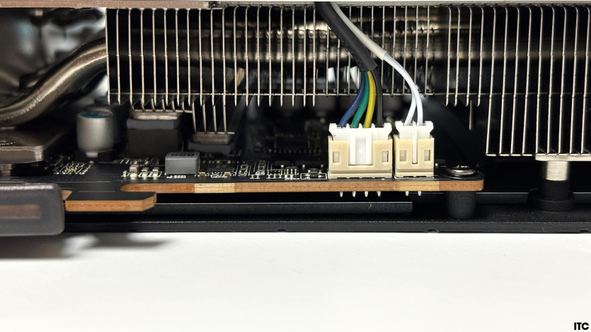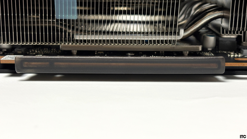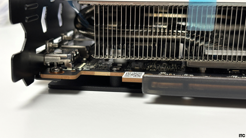 Система охлаждения здесь построена без сюрпризов, но с правильными акцентами. Основу составляет большой алюминиевый радиатор с вертикальной структурой ребер, который занимает большую часть пространства карты и работает на эффективное (надеемся!) рассеивание тепла под нагрузкой.