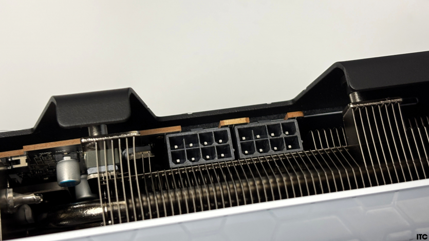 Тепло от GPU и памяти отводится через шесть никелированных медных тепловых трубок диаметром 6 мм. Они равномерно распределяют его по всей площади радиатора, что позволяет избегать локальных перегревов и держать стабильные частоты даже в длительных игровых сессиях.