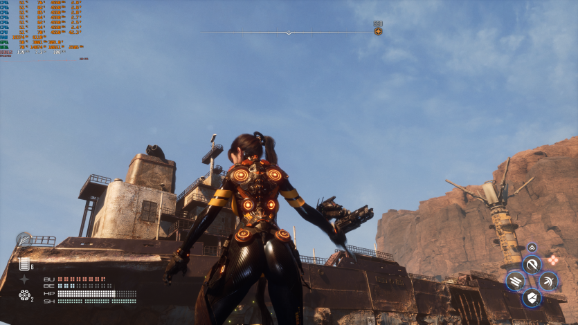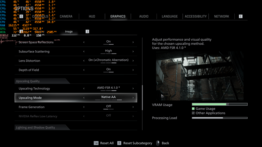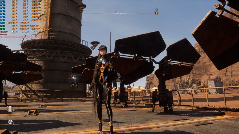 Stellar Blade на Epic с TSR Native и FG держит ~129 FPS. Тут приятно, что даже без агрессивного апскейла картинка остается четкой, а FPS — высоким. Да, Unreal Engine 4, однако это не делает прелести Евы менее эстетически привлекательными для рядового геймера. К тому же, визуально-художественный стиль здесь на очень высоком уровне.