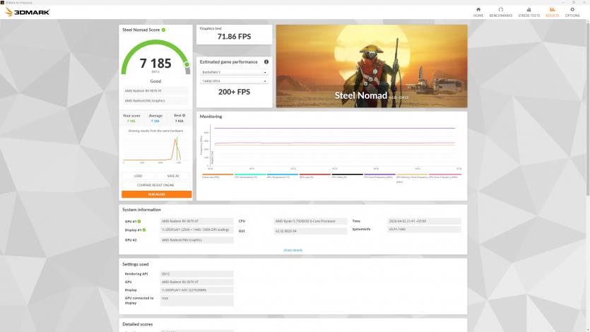 | 3DMARK Steel Nomad | 7 185 |