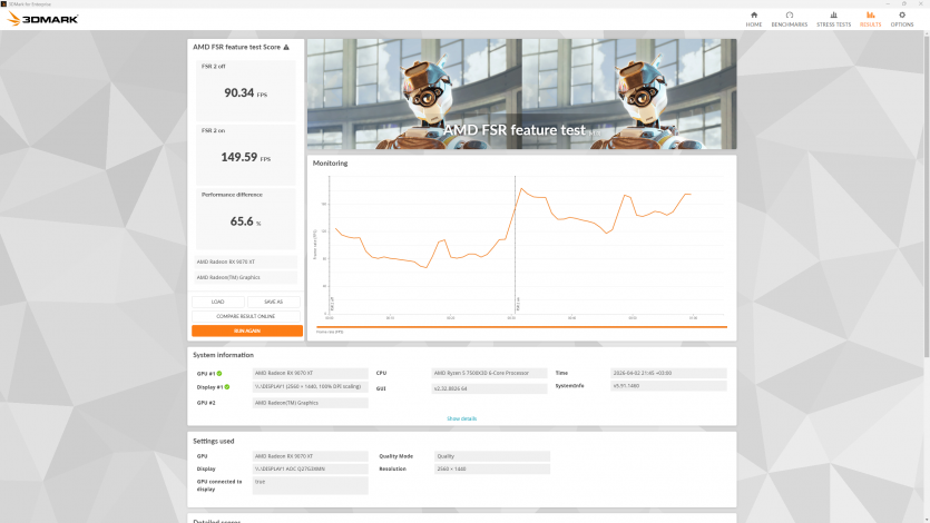 RX 9070 XT в разрешении 2560×1440 раскрывается именно так, как и ожидаешь от старшей модели на RDNA 4. Тесты проводились с максимальными настройками, с активной трассировкой лучей, а также с использованием FSR и генерации кадров.