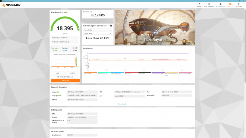 | 3DMARK Port Royal | 18 395 |