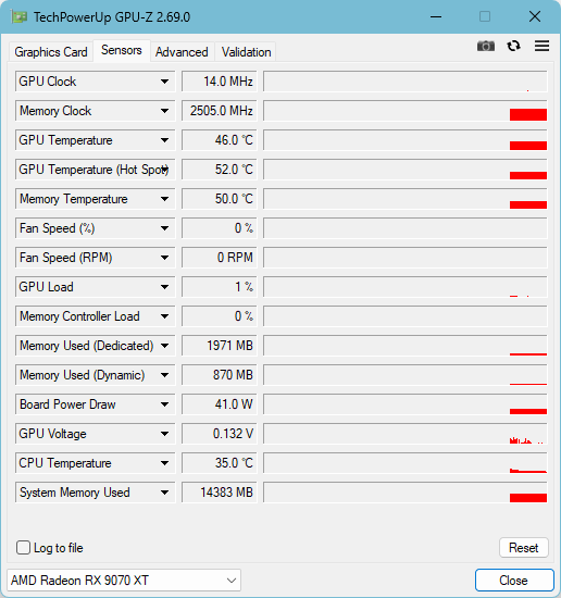 В повседневном использовании Radeon RX 9070 XT Hellhound Reva Edition вентиляторы останавливаются, система становится бесшумной, и ты вообще забываешь, что внутри стоит видеокарта такого класса.