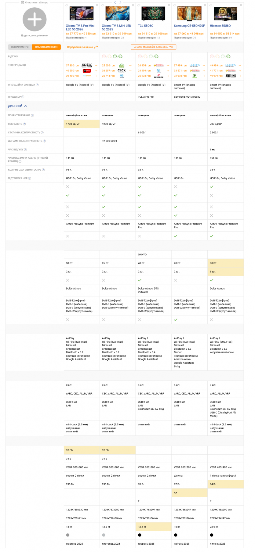 Обратите внимание и на Samsung QE-55QN70F (цена от 27 000 гривен), а также на Hisense 55U8Q с ценником от 34 950 гривен.