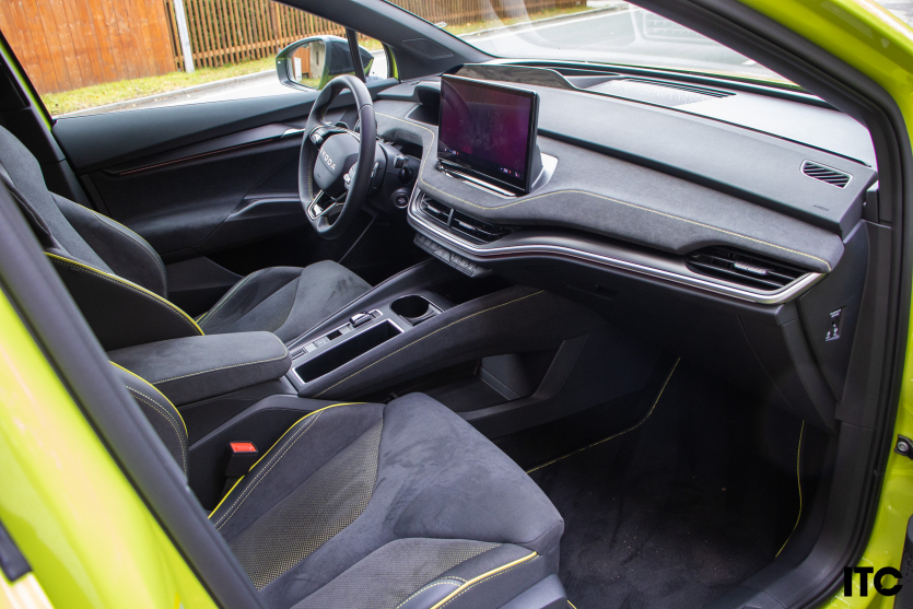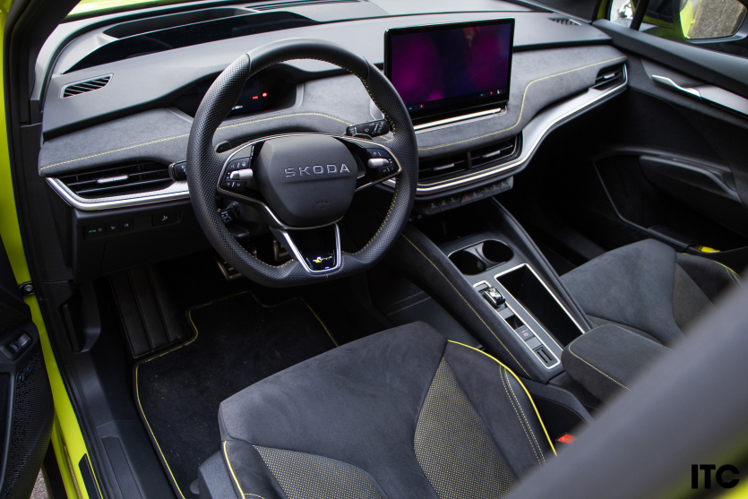 В городе Elroq очень приятный. Он достаточно компактен для маневров, не пугает габаритами и не утомляет. Он держится собранно без лишних движений кузова, а электрическая тишина добавляет ощущение дорогого спокойствия. Подвеска многорычажная во всех версиях и хорошо отрабатывает на европейских дорогах, а топовая RS предлагает еще и адаптивные амортизаторы DCC. На городских улицах Elroq кажется именно тем типом автомобиля, который не ссорится с ямами, не суетится на светофорах и не заставляет водителя ежеминутно корректировать траекторию, потому что откликается легко, почти вежливо.