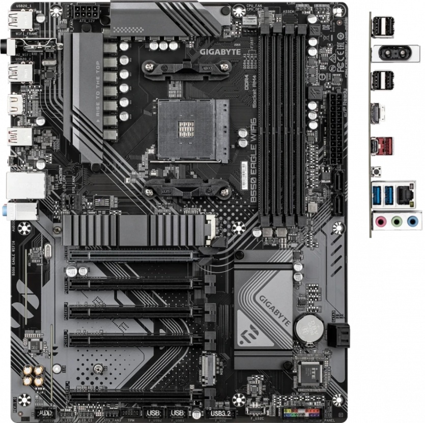 Материнская плата Gigabyte B550 EAGLE WIFI6 выбрана как одна из немногих моделей, позволяющих сохранить современные интерфейсы на более старой платформе.