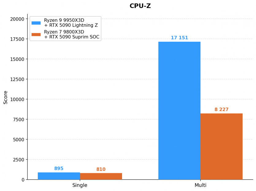 Конкретно в этом случае даже многопоточность и скорость MSI GeForce RTX 5090 LIGHTNING Z 32768MB не дают рассчитывать на существенный отрыв. Еще одно доказательство того, что «грубая» производительность не всегда масштабируется.