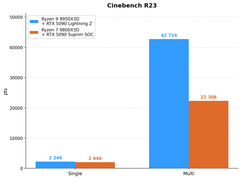 | бенчмарк | Ryzen 9 9950X3D + MSI GeForce RTX 5090 LIGHTNING Z | Ryzen 7 9800X3D + MSI GeForce RTX 5090 32G SUPRIM SOC |