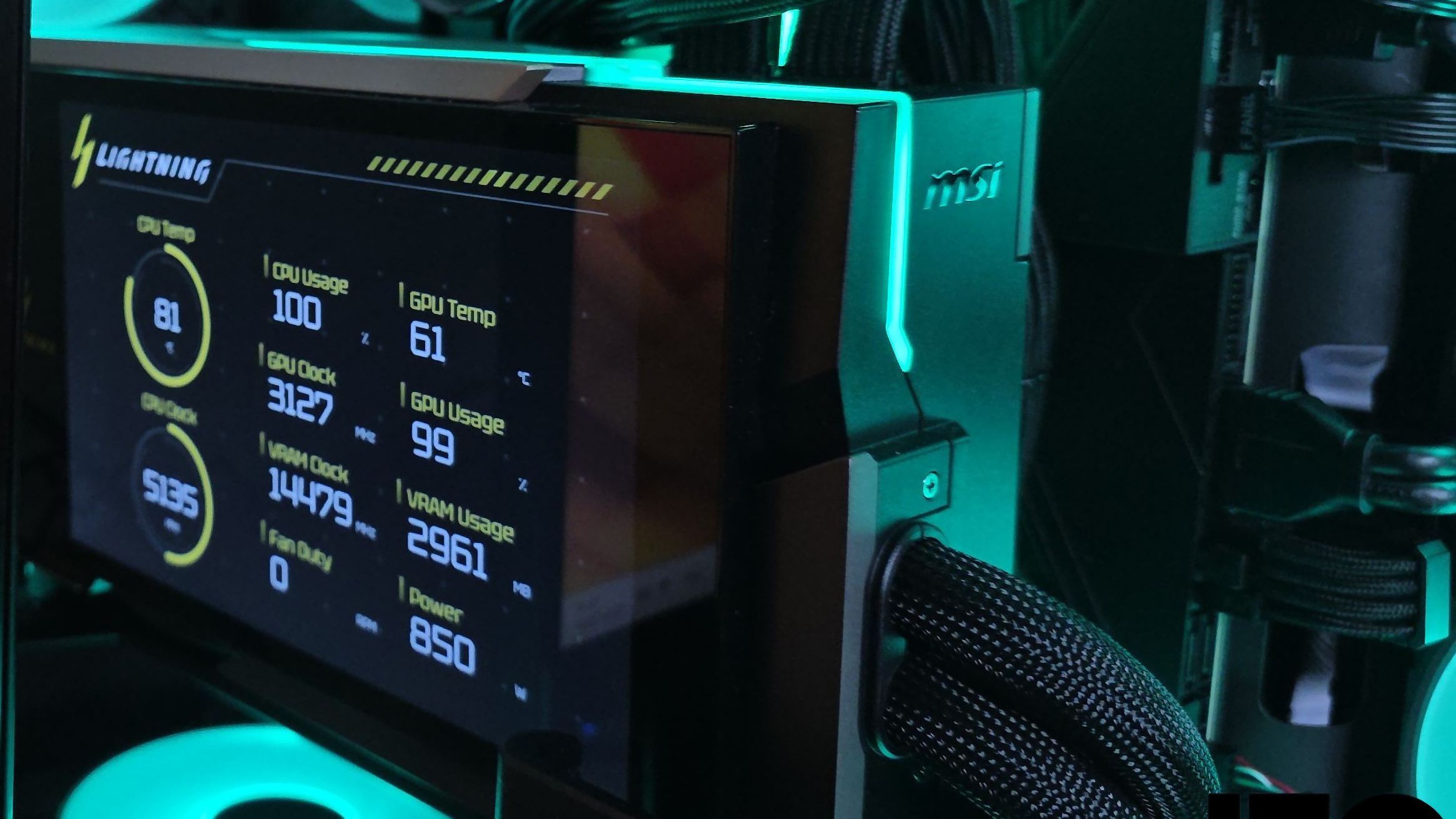 Со всем тем MSI GeForce RTX 5090 LIGHTNING Z — со всем тем MSI GeForce RTX 5090 LIGHTNING Z превосходное сочетание производительности и визуальной красоты. Ее встроенный дисплей действительно находит свое место в капризных сценариях энтузиастов, начиная от визуализации показателей системы и заканчивая функцией дополнительного дисплея.
