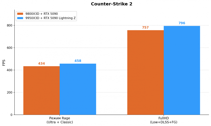 Counter-Strike 2 на низких настройках в FullHD достиг 796 FPS, что делает эту сборку мечтой денежных киберспортсменов. Я к ним не отношусь и обычно не отличаю 180 Гц от больших величин