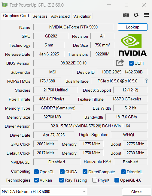 Ryzen 7 9850X3D, который работает в моем ПК, смог бы «выжать» больше FPS из RTX 5090 Lightning Z. Хотя для рабочей станции 32-поточный процессор выглядит целесообразнее.Для чистого гейминга сборка с 2025 года на Ryzen 7 9800X3D с RTX 5090 SUPRIM SOC обеспечивает 90% производительности EVOLVE Lightning Powered_by MSI.