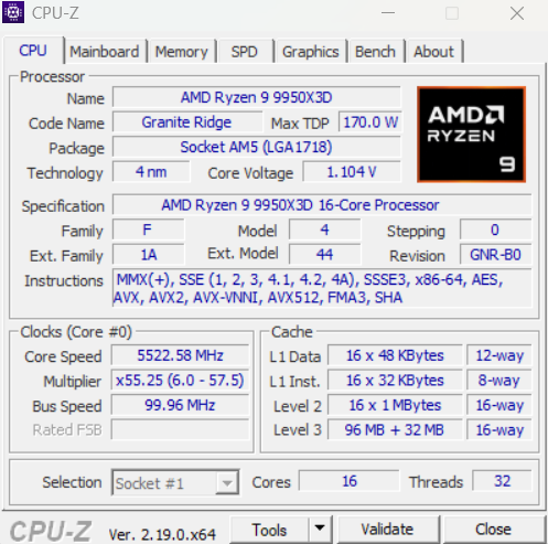 | Процессор | AMD Ryzen 9 9950X3D (16 ядер / 32 потока, 4.3-5.7 ГГц, 128 МБ L3) |