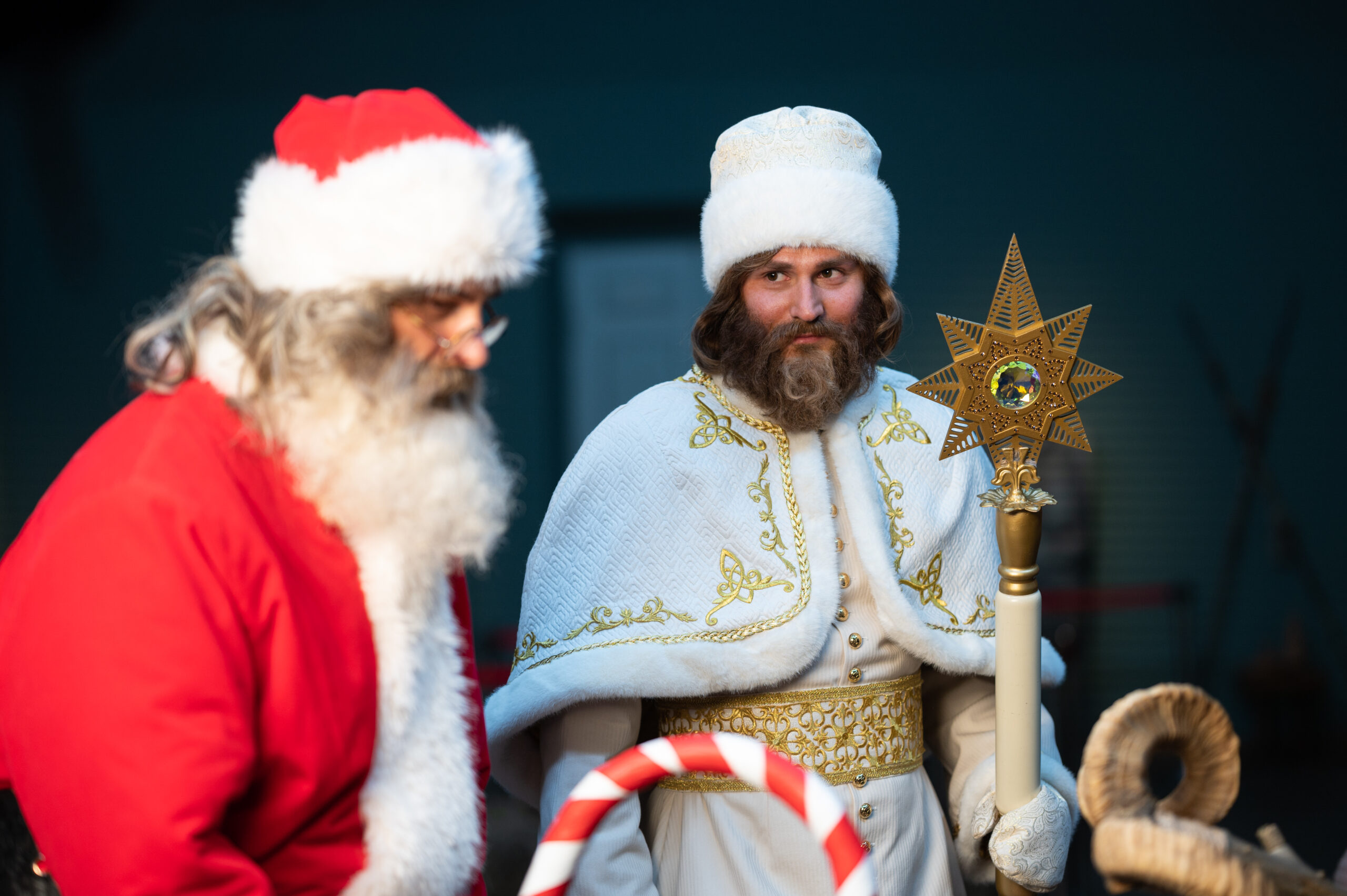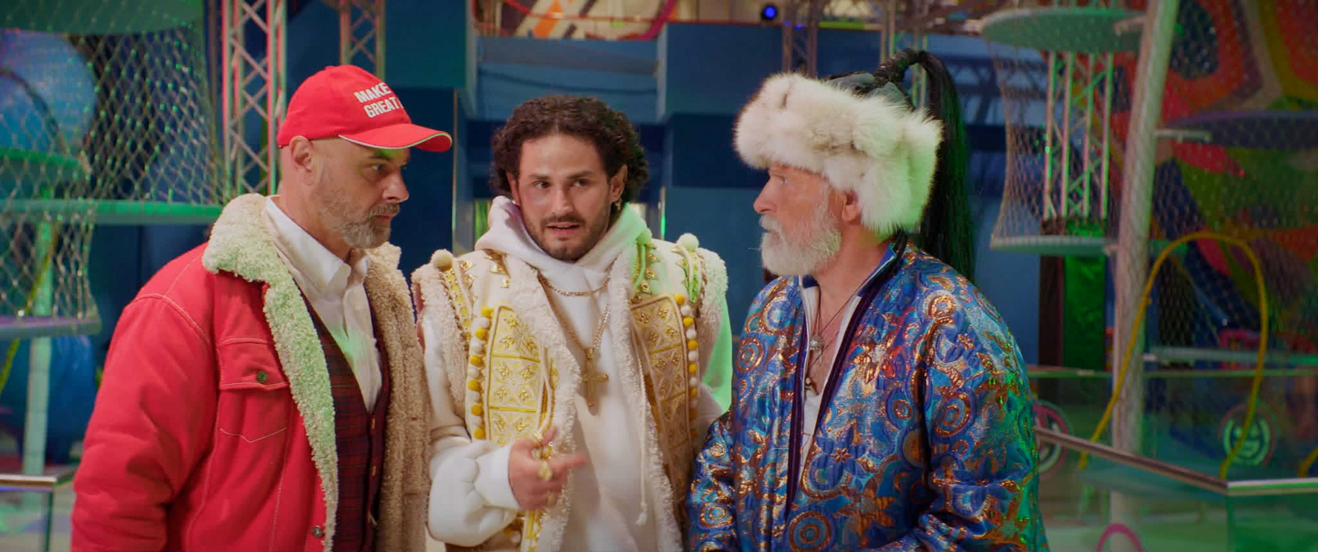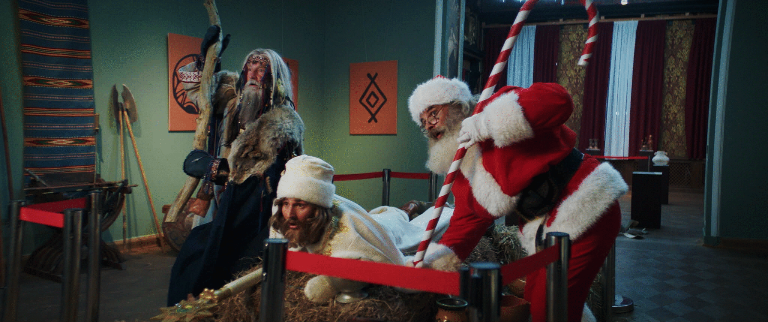 Трое главных героев выполнены в узнаваемых, но по-своему интересных интерпретациях. Святой Николай — современный, энергичный, с шутками на грани молодежного сленга, из-за чего фильм порой балансирует между забавностью и откровенным кринжем. Дух Зимы часто недоволен жизнью. А Санта Клаус типичный «западный гость», который вносит во всю историю немного самоиронии и вечной борьбы между нашими и чужими традициями. Их характеры выписаны не очень глубоко, но химия между троицей работает, потому что есть шутки, споры, теплые сцены и даже намек на настоящую дружбу под всем этим праздничным хаосом.