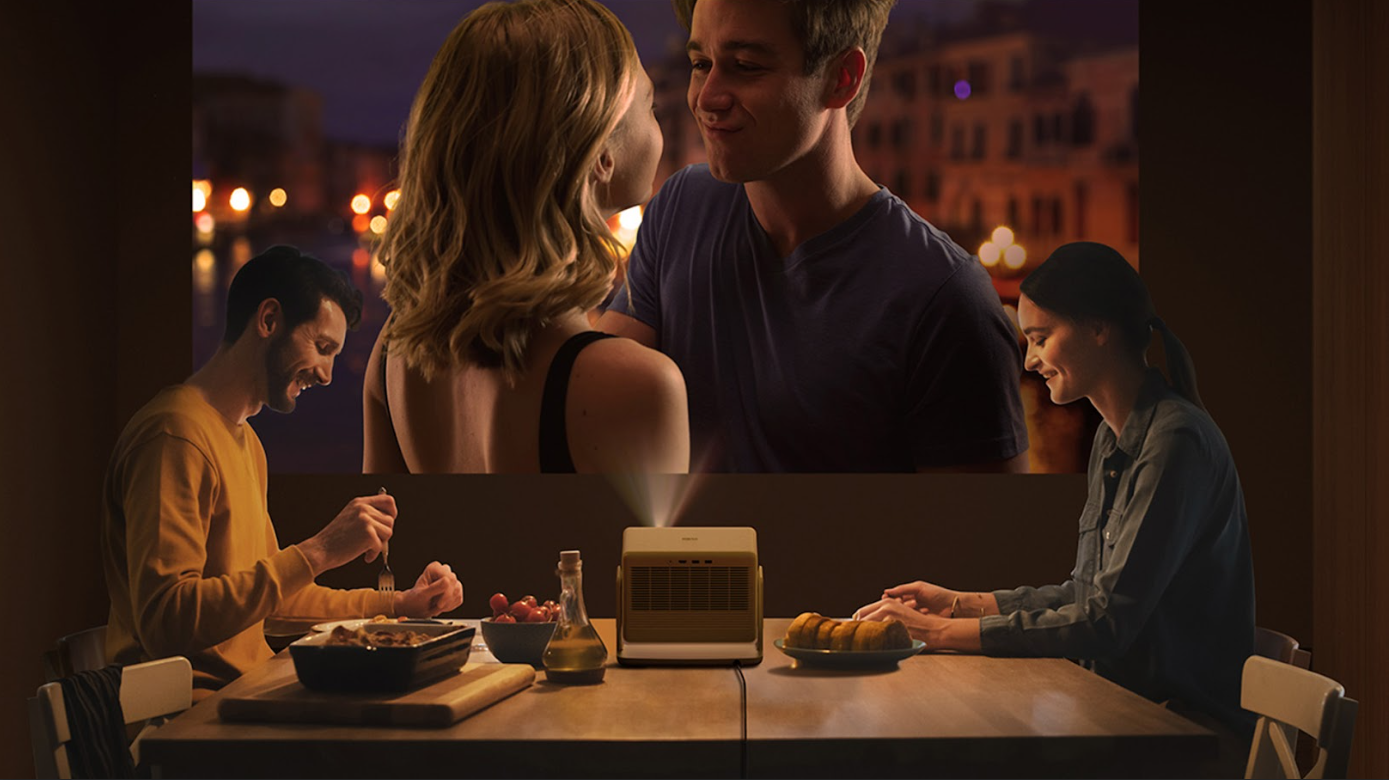 Проектор показывает четкую Full HD картинку и имеет встроенную батарею, а подставка Powerbase одновременно служит стильной базой для проектора и дополнительным источником питания, чтобы смотреть фильмы дольше без розетки и не тянуть лишние провода через комнату. Creative Set добавляет магнитные световые фильтры, которые проецируют на стену атмосферные цветные эффекты, так что одна коробка превращает обычную комнату и в домашний кинотеатр, и в уютное пространство для праздничных вечеринок.
