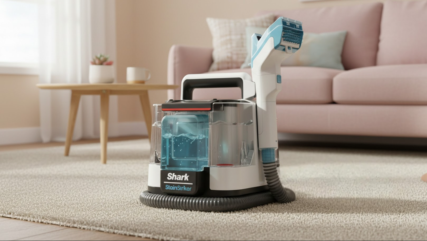 После праздничных застолий, детей и домашних питомцев на коврах часто остаются пятна от напитков, еды или грязи с улицы. Shark StainStriker создан именно для таких случаев: он сочетает компактный моющий пылесос и пятновыводитель с отдельными резервуарами для чистой и грязной воды.