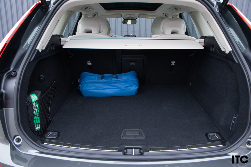 Несмотря на гибридную установку в XC60, в отделении помещается 1528 литров при сложенных задних сиденьях и 598 л при разложенных. Это пространство для четырех чемоданов и одной ручной клади даже с поднятыми сиденьями. Удобные крючки для сумок и ниша под полом с емкостями для хранения. Буксировочная способность — до 2250 кг, чего достаточно для прицепа с лодкой.