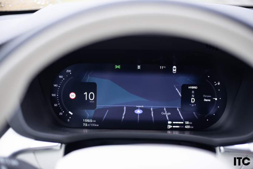 Цифровая панель приборов 12,3 дюйма четкая и информативная. Графический проекционный дисплей выводит ключевую информацию прямо на лобовое стекло. Интерактивно оповещает о работе ассистентов и привлекает внимание к ограничению скорости. И в принципе служит для того, чтобы вы вообще не отвлекались от дороги.