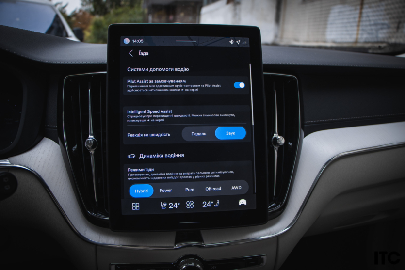 Уникальность системы Volvo XC60 PHEV именно в нюансах. Он позволяет двигаться только на электричестве, или в гибридном режиме, используя максимально электрический режим и это можно самостоятельно настроить в меню, чего я до сих пор не встречала в подзаряжаемых гибридах. Можно включить отдельно и режим, когда двигатель заряжает батарейку. Особенность работы такой системы в осторожном расходе топлива. Ведь здесь в гибридном режиме он держится на уровне 4 литров на 100 км/ч, а при активной работе бензинового двигателя не поднимается выше 7,5 литров.