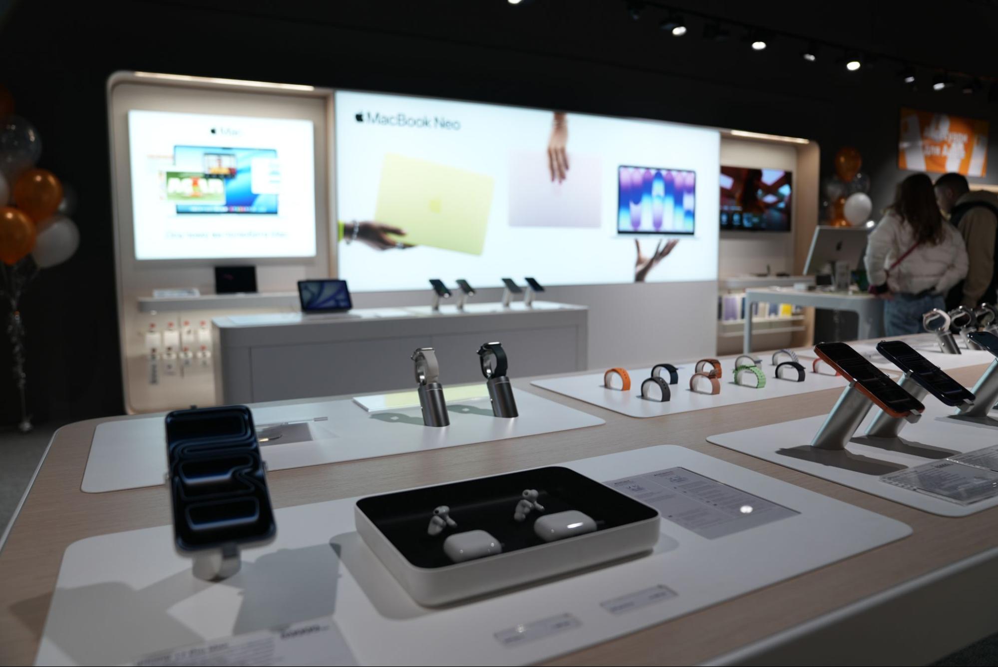 И если раньше такая зона в магазине была скорее точкой продаж, то теперь это пространство, куда можно зайти отдельно за впечатлением. Послушать звук, протестировать новые MacBook, оценить игровые сценарии, посмотреть, как работает экосистема, и уже потом решать, что именно твоё.