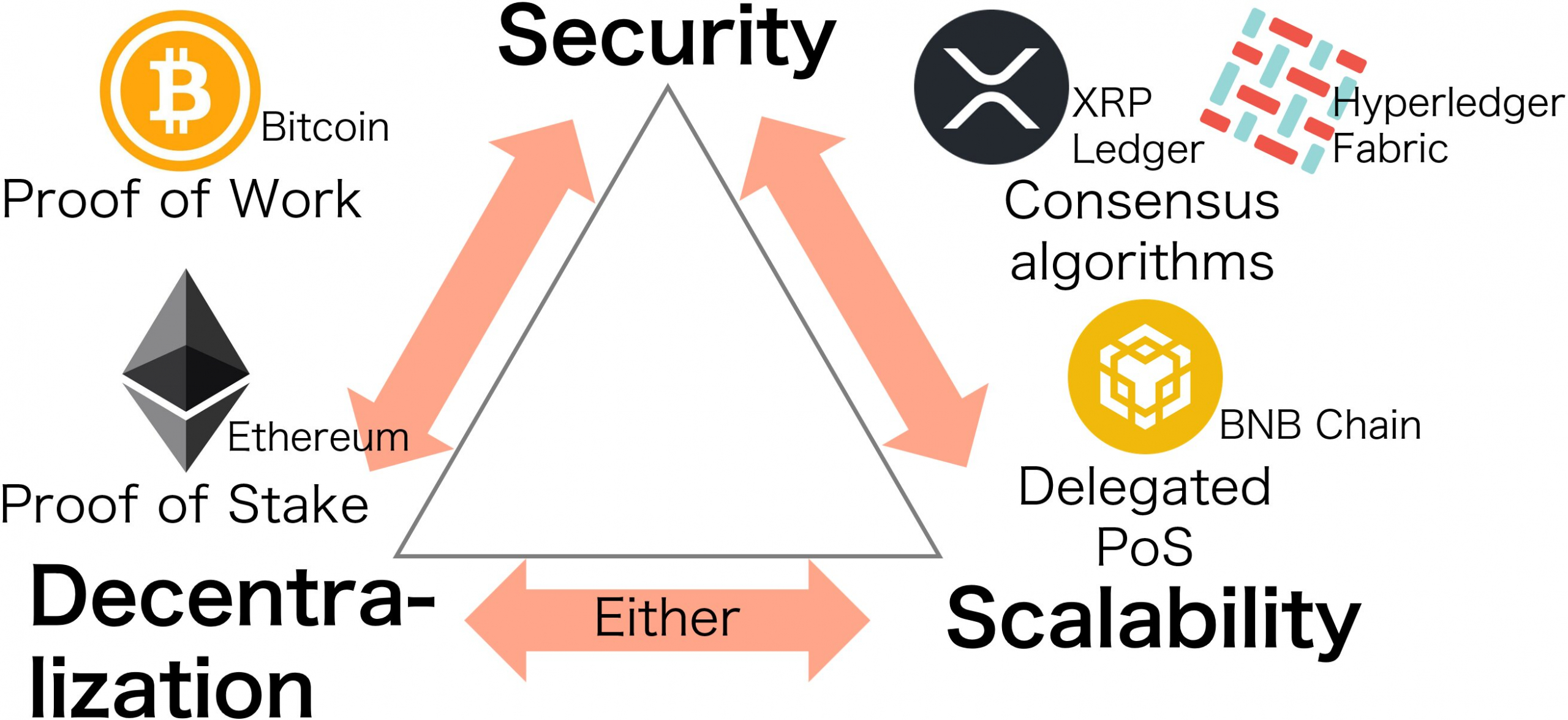 Безопасность — это способность сети противостоять атакам и злонамеренным действиям. Высокая безопасность требует значительного количества валидаторов или майнеров и сложных консенсусов. Это делает сеть надежной, но в то же время снижает ее скорость.