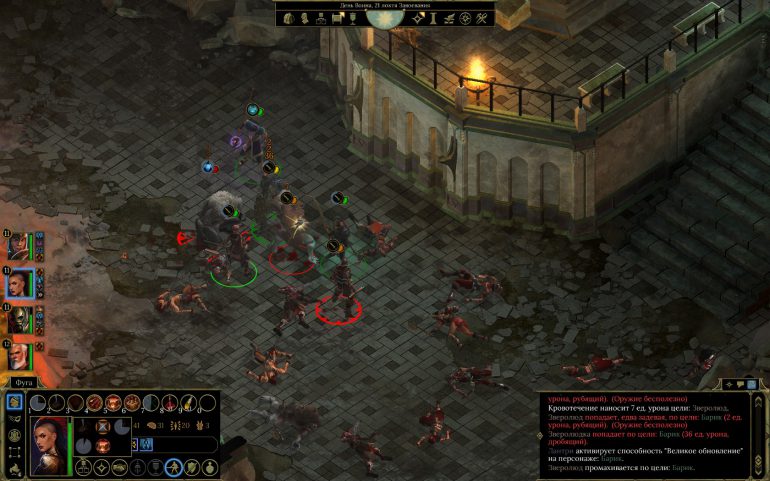 Бои же — практически классика изометрических ролевых игр. Танки, бойцы ближнего и дальнего боя, лекари, маги, целебные зелья, управляемая пауза. Вы знаете, что делать. Приятным нововведением стала возможность составлять собственные заклинания из найденных рун. Состоят они из “сути” волшебства — исцеления, каменной стрелы и так далее, способа воздействия и дополнительных параметров. А еще комбо — мощные (и шикарно выглядящие) удары, выполняемые попарно. Алая фурия Фуга выпускает ливень стрел в Баррика, ходячую крепость, тот накапливает их и взрывается, разнося в клочья окруживших его врагов. Вершитель подбрасывает Фугу вверх, и она расстреливает цель серией точных выстрелов, игнорирующих броню. Объединив усилия с ученым Лантри, Вершитель исцеляет всех сопартийцев разом, после чего кооперируется со зверолюдкой и двойным тараном впечатывает вражеского мага в каменный пол.