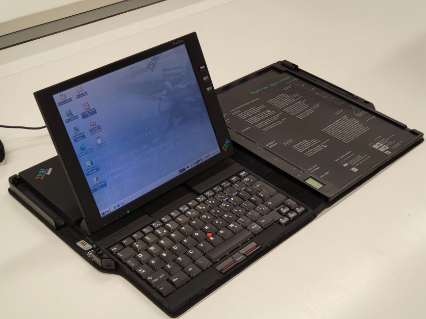 В 2001 году появился ThinkPad TransNote. Это был удивительный гибрид ноутбука и бумажного блокнота. Специальное цифровое перо позволяло писать на обычной бумаге, а ноутбук автоматически переносил рукописные заметки в цифровой формат. Это было на годы раньше, чем iPad и цифровые блокноты стали мейнстримом.