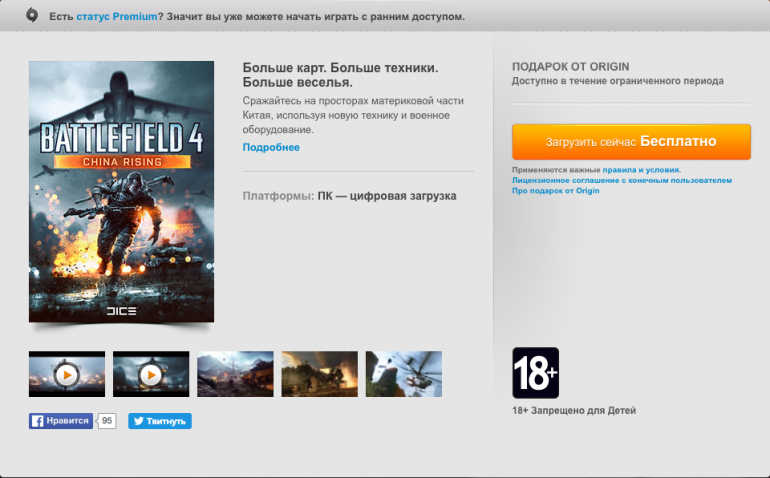 DLC бесплатны на всех игровых платформах (PC, Xbox One, Xbox 360, PS4, PS3). Помимо этого в Origin сейчас действует 50% скидка на Battlefield 4 и некоторые другие игры — ORIGIN50.