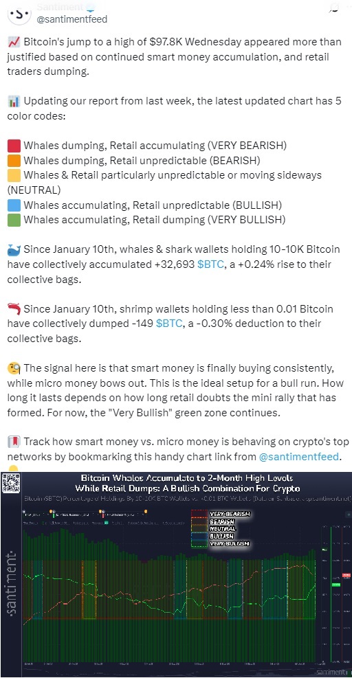 «Это идеальная конфигурация для начала бычьего ралли. То, как долго оно продлится, зависит от того, как долго розничные инвесторы будут сомневаться в сложившемся мини-ралли», — подытожили в Santiment.