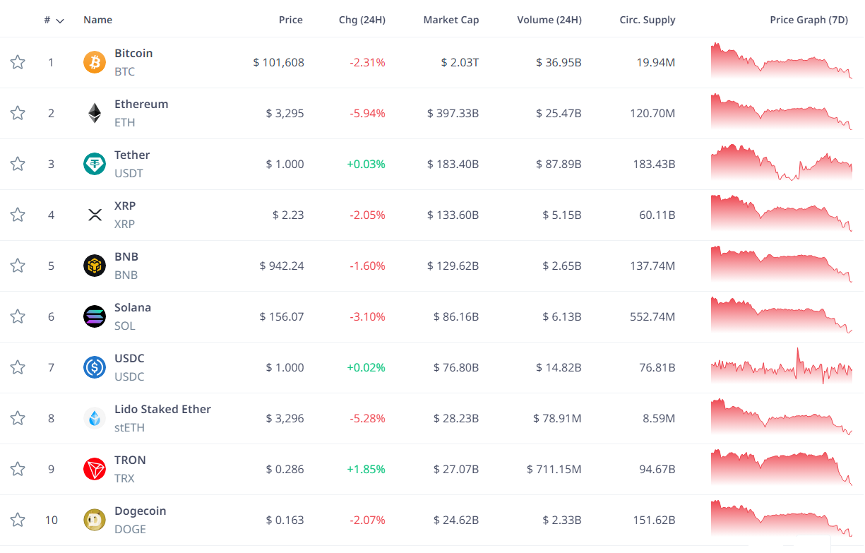 Одной из причин этого является падение спроса среди институциональных инвесторов, что указывает на ослабление интереса к цифровым активам на фоне общей экономической неопределенности. Давление на рынок также растет из-за продаж биткоина со стороны долгосрочных держателей, что является ожидаемым явлением в условиях низкого спроса. Сейчас рынок несколько восстановился, но продолжает находиться в нисходящем тренде. На момент написания статьи биткоин торговался на уровне $102 000, Ethereum — около $3 320.