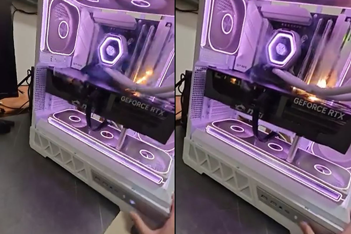 Видео опубликовали на платформе Bilibili. По словам владельца, он только что установил новый блок питания мощностью 1300 Вт и впервые смонтировал в систему видеокарту MSI GeForce RTX 5090 Trio. Перед первым запуском решил записать процесс включения — «на всякий случай». Осторожность оказалась не напрасной.