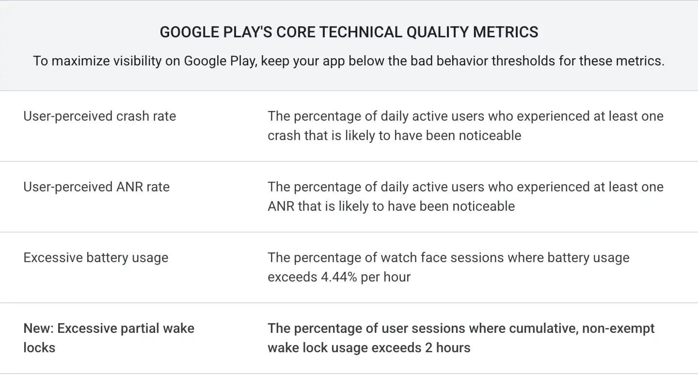 Исключением будет оставаться блокировка разблокировки, если это системная блокировка, предлагающая пользователю явные преимущества, которые невозможно оптимизировать дополнительно, например, воспроизведение звука или инициированная пользователем передача данных. Google определяет порог некорректного поведения, когда 5% пользовательских сеансов приложения за последние 28 дней являются чрезмерными.